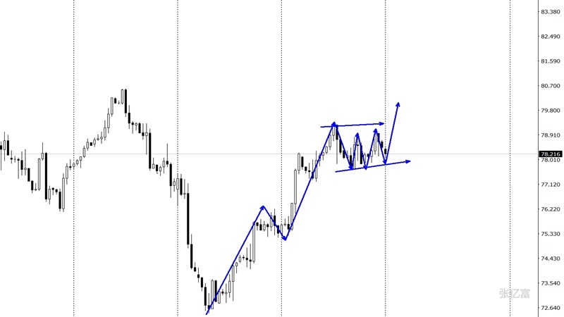 /桶,后行情先回落,日线最低给到了77.94美元/桶,后行情强势拉升,日线最高触及到了80.42美元/桶,后行情整理,日线最终收线在了80.41美元/桶,后行情以一根下影线很长的大阳线收线,而这样的形态收尾后,原油