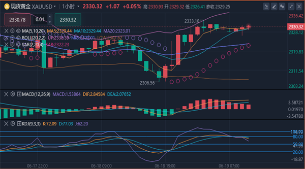 【黄金技术面分析】:昨天黄金早间开盘直接走下行从2325跌至2306一线,美盘由于数据影响再次探底回升,在区间2325-2312来回拉扯最终多头略胜一筹,午夜最高触及2333一线,收盘于2329,日线收长下引线的大阳,那么针对这个行情来看,从上次2387一天跌了100个点以来这是第三次探底回升,第一次2286,第二次2295,第三次就是昨天的2306,高点在不断的抬高,支撑比较明显,但是高位的阻力还没有破位,我们不能盲目的看涨,上方关注2336-2341一线阻力,下方关注2310-2305一线支撑。