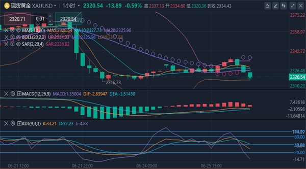 美元/盎司附近。稍早最低触级2322.61美元/盎司。这一跌势反映了市场对黄金短期内的看空情绪。