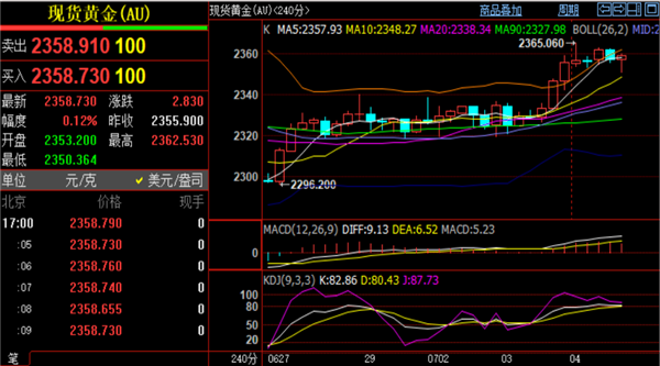 (美黄金06,4700.8,0.03%,模拟交易)实时行情分析:白盘黄金波幅有限,实时现报价2357一线,