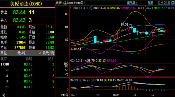 油价格再次触及83.9一线遇阻回落,API与EAI数据双双利多都没有拉起来油价