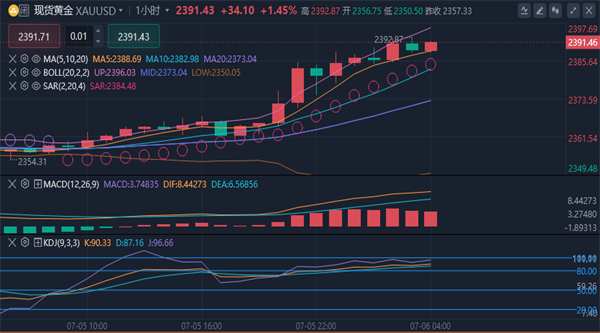 (美黄金06,4701.5,0.04%,模拟交易)市场经历了一系列波动,价格再次接近2400