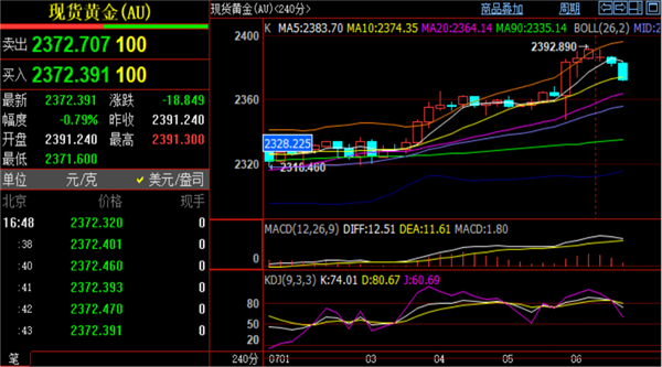 黄金实时行情分析:周一白盘黄