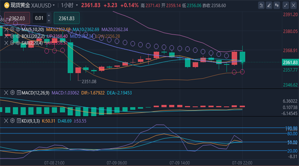 均线较远,现在2370顶底转换成为空头的重要压力位,黄金在2351暂时止跌反弹,但是4小时图大阴线压制,料定还会反复测试低点,目前盘面出现了破位2368支撑下跌。这意味着本周市场可能会进行回调。现在空头趋势良好,金价