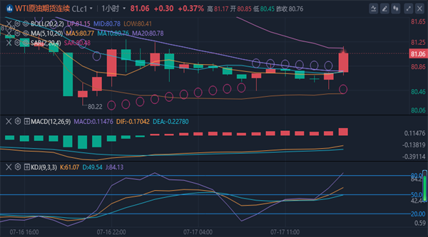 美原油目前交投于80.67