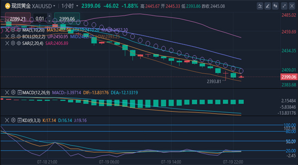 (美黄金06,4697.9,3.47%,模拟交易)交投于2395.97美元/盎司,日内暴跌约50美元,跌幅2.01%。消息面上,市场对