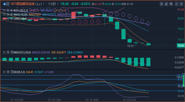 美国原油期货9月期货下跌0.98%,收报80.83美元/桶。这两大指标原油在前一交易日均上涨。