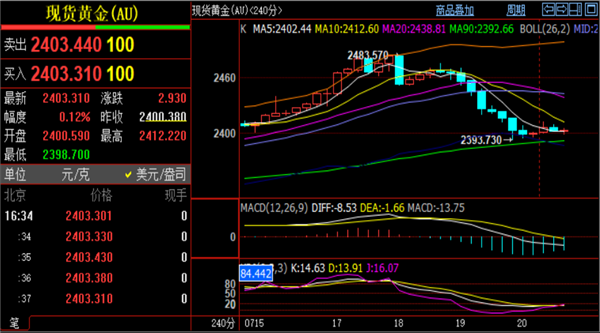 (美黄金06,4697.9,3.47%,模拟交易)早盘直接高开,早间高点触及2412一线滞涨后回落,实时现报价2403一线。刘铭诚先说一下对本周