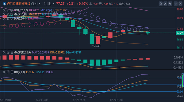 美原油目前交投于77.40美元/桶附近。油价