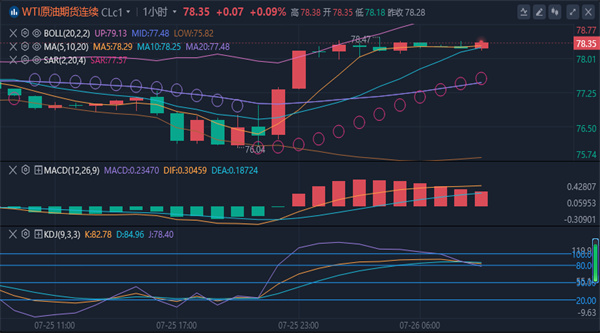 止损79.3,下方回撤77.2附近,可尝试短多,77破位离场,随着行情的运行,各大均线位置会有所改变,所以具体操作点位以盘中实时为主。综合来看,原油今日操作思路上建议以回踩低多为主,反弹高空为辅,上方短期关注79.5-80.0一线阻力,下方短期关注77.0-76.5一线支撑。