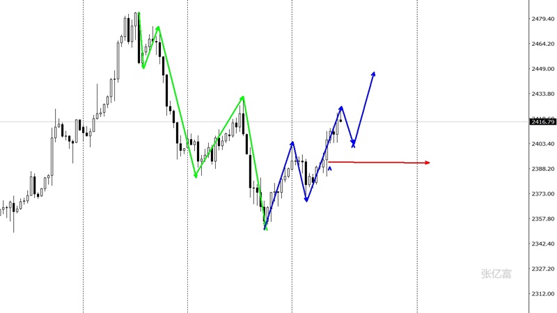 在2353美元企稳之后,出现了一波多头上涨推浪走势,当前多头强弱一线2390美元水平,进一步下破后黄金将再次回归弱势,在此位置之上黄金依旧有出现五浪推动的概率,上方扩展线水平在2451美元区域。综合以上分析,张亿富认为:黄金今日高开高走,多头有望出现延续,今日操作上考虑回撤布局多单为主,上方关注2430-2450美元阻力,下方关注2412-2400美元支撑。