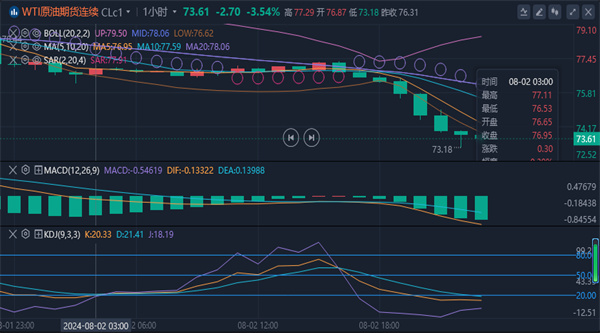 美元,阻力位在77.96美元。在全球需求疲软和中东紧张局势的推动下,