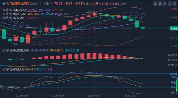 油价上一交易日在2月5日低点71.39上方获得了支撑,录得了较长的下影线,暗示逢低买盘强劲,