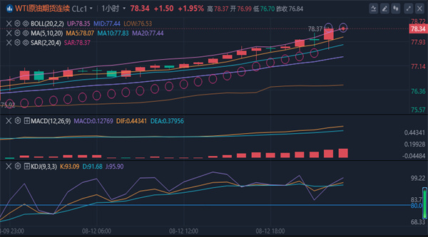 (美原油(美原油06,93.71,-4.33%,模拟交易)05,102.00,-2.87%,模拟交易)技术面分析】:原油周线触碰三角区间下轨处启稳,连阴之后转中阳线回升,将前一周的下跌失地收复近半,周线下轨启稳后本周有望先向上轨处反弹靠近。原油4小时图一波下探回升式的持续性反弹,打破了此前的弱势阴跌。以布林道中轨做为支撑点做防守看反弹向上,中轨支撑在75.50附近,上方首个反弹的目标关注78.80.台阶次高点,收复则进一步向上轨反弹。综合来看,原油今日操作思路上以回踩低多为主,反弹高空为辅,上方短期关注79.0-79.5一线阻力,下方短期关注77.0-76.5一线支撑。