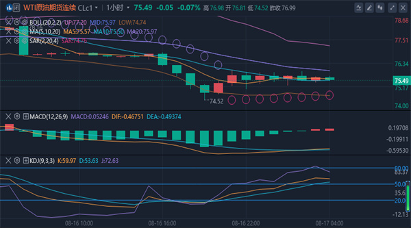 均线,看能否重新站上与坚守它,将是行情的关键,上方阻力79.3,暂时看区间破位,增加看涨或看空信号,等待下一个支撑或压力,80附近再次做空,预计在站上80.3,跌破76之前,原油宽幅震荡在此区间之内,具体操作以盘中实时点位为主,各大均线位置随着时间会有所改变。综合来看,原油下周操作思路上以反弹高空为主,回踩低多为辅,上方短期关注76.5-77.0一线阻力,下方短期关注74.5-74.0一线支撑。