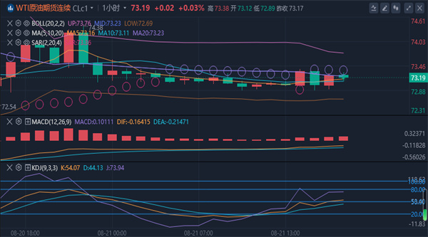 均线指标都是空头排列,今日欧美盘思路只做空,低位做多只能等尾盘再参与。原油期货价格上周五跌破76美元水平,确认了80附近双重顶形态的完成,并在周一日内基础上受到预期的下跌压力,行情受限,预计,看跌趋势将在接下来的交易时段继续占主导地位,目标首先是73.0美元,进一步可能延伸至72.50美元和70.00美元整数关口区域。然而,若价格重新突破76.2美元,此处是日线中轨压力,能够保持在其上方,下跌情景将停止,价格有望重新推高。原油策略: 目前行情建议在76.0位置稳健做空。73.0位置轻仓做多。