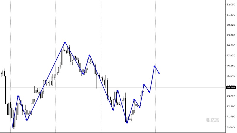 (美原油(美原油06,93.56,-4.48%,模拟交易)05,101.40,-3.44%,模拟交易)实盘在73.0区域布局多单,在74.2-74.7一带减仓。