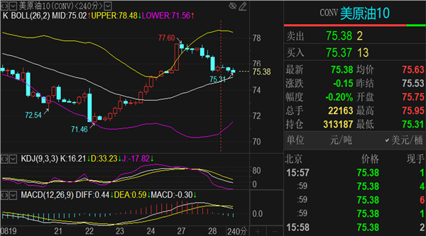 (美无铅汽油05,3.2054,-2.78%,模拟交易)格经过昨晚的上涨,从4小时布林带中轨下方转变为布林带中轨上方运行,短线就先看中轨75.5和4小时上轨77.2区间的运行情况,后续的行情破位再看延续。现在的EIA数据真是很迷惑,上周公布利多原油价格下跌,这周公布利空原油价格却上涨,对于行情走势变化,并不能一味的依赖参考数据,也有可能市场提前走预期完成消化过程。