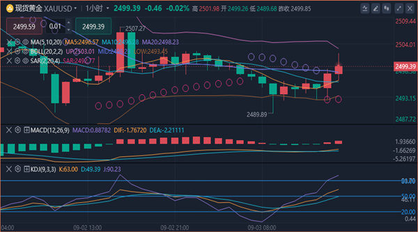 黄金消息面分析】:周一(9月2日),现货金下跌约0.1%,收盘在每盎司2499.29