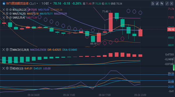 均线系统的压制,短线客观趋势方向向下。从动能看,多空在相互胶着中,油价在底部有望形成次要震荡区间,预计日内原油保持底部低位调整节奏,仍以看空思路为主。综合来看,原油今日操作思路上以反弹高空为主,回踩低多为辅,上方短期关注71.5-72.0一线阻力,下方短期关注69.0-68.5一线支撑