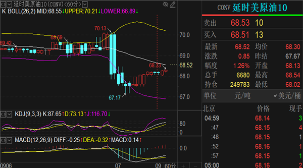 (美无铅汽油05,3.2032,-2.84%,模拟交易)格一度跌至67.17美元,最后收跌1.67%,报68.16美元/桶。分析师表示,OPEC+对价格而非市场份额的关注继续支撑着其他来源的石油供应,这使得OPEC在不导致油价暴跌的情况下实施减产的空间越来越小。原油现报价68.2一线,日内关注69.1阻力和67.2支撑,同样是参考这个区间高抛低吸,向上偏差看69.6和70.2两个阻力节点,向下偏差看66.5-66区域支撑。短线策略:反弹触及69.1做空,止损69.7,目标68.2-67.5;低位参考67.2-66.7区域做多,损66.2,目标68-79,破位持有;