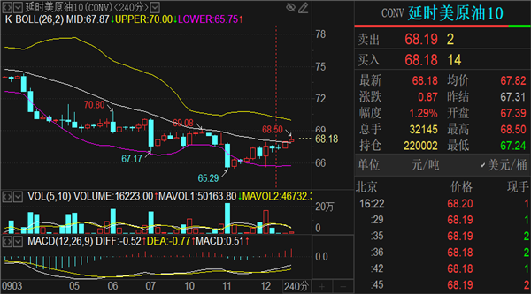 (美原油(美原油06,94.29,-3.74%,模拟交易)05,101.84,-3.02%,模拟交易)上涨符合预期,我不相信这一周还会从周一跌到周五,周初行情下跌可以当做利空出尽对待,周四和周五优先看反弹。周初很少参与空单,但是防守支撑范围多次做多看涨都拿到了不错的利润。本周原油的跌幅已经完成修复达到三分之二,目前实时现报价68.2一线,而周初的高点再69.1,若是突破69.1压力点,周