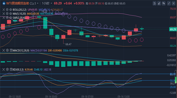 【原油技术面分析】:原油上周五出现了震荡反弹走势,在69.1-69.3区域形成底部反弹,最高点触及70.3美元一带徘徊。日线图级别看,中期走势仍维持区间震荡整理节奏。油价