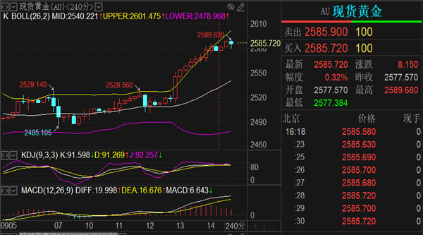 短线到达2580位置。现在时间进入欧盘,还是延续早上的思路,日内关注早盘低点2578位置来定强弱,跌破直接看行情延续,没破就是高位震荡对待。