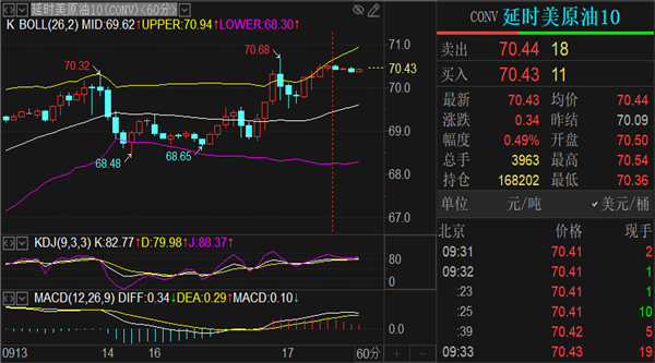 原油目前交投于70.42美元/桶附近。油价