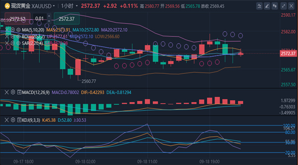 【黄金技术面分析】:黄金日线图来看,日K之中,随机指标钝化金叉,钝化震荡运行,形态上,单阴回落,MACD指标钝化顶背离,这个是钝化顶背离是偏空信号,日K目前金叉状态,