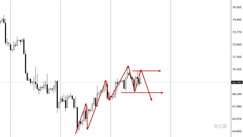 短线客观趋势呈震荡节奏。震荡区间在71.00-69.50之间。综合以上分析,张亿富认为:原油今日出现了多头延续,再次回归区间上轨附近,关注突破情况,操作上考虑回撤布局多单为先,高空为辅,上方关注71.0-72.0