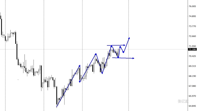 下方出现了承压迹象,下方在70.3美元一线企稳上涨。