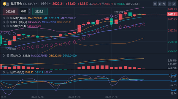 美元,最高触及2,625.81美元/盎司,最终收盘于2,622.78美元,涨幅达到1.40%。这一涨势主要受到