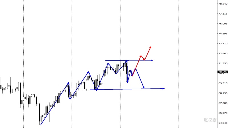 会再次转空。综合以上分析,张亿富认为:原油上涨后多头再次延续,关注多头是否持续突破,后市操作上考虑回撤布局多单为主,高空为辅,上方关注73.5-74.3美元阻力,下方关注71.0-70.0美元支撑。