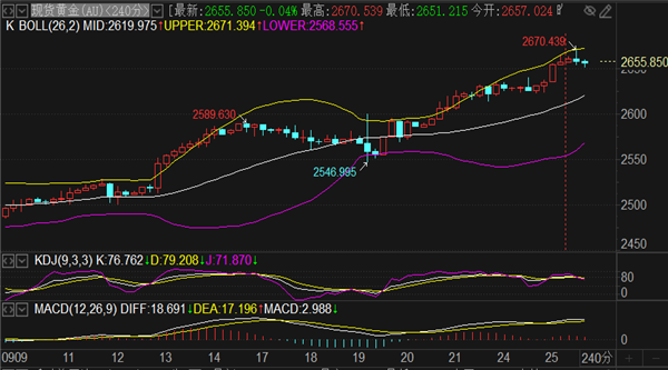 黄金实时行情分析:现货黄金周三亚盘的下跌只是单边上涨过后的修复指标行情,趋势还是偏多头,今日的阻力参考刘铭诚早间说过的2670和2675两个阻力节点,欧盘收线下跌减弱,临盘给出2653多单,看涨2660和2665。周初三天金价