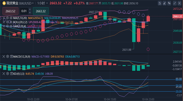 (沪金2606,1029.14,0.89%,模拟交易)直线下跌触及2630一带企稳徘徊。日线中阳带有较长下影线,形态上表现出下方有支撑的视觉,但是高位超买区域的这个形态效果会大打折扣的。四小时级别上看,如果日内2667站稳,那么下周可能会进一步走震荡偏多。总体的上升通道保持完好。重点关注2630附近这里得失,不破高位震荡概率加大。综合以上分析:黄金在数据打压下出现了承压迹象,