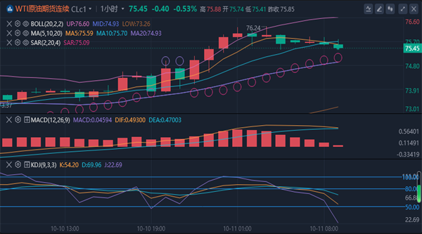 美原油目前交投于75.62美元/桶。布伦特原油