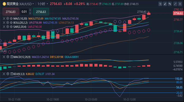 黄金消息面分析】:周二(10月22日),现货金上涨1%,以历史纪录高位每盎司2,748.38
