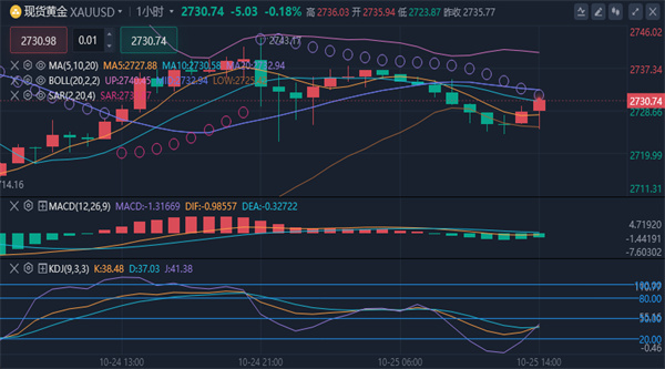 黄金消息面分析】:周四(10月24日),现货金上涨0.7%,收盘报每盎司2,735.55