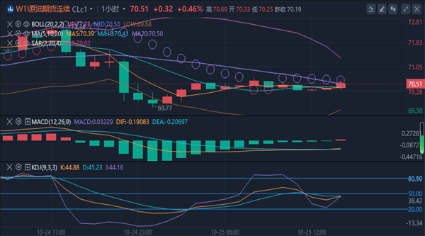 【原油技术面分析】:日线昨日带有上下影线的阴柱贯穿中轨和均线粘合点,代表价格还是震荡走势。而目前日线指标macd死叉放量,灵动指标sto向下代表日线震荡偏弱。短期关注均线MA60和中轨粘合压制71.6一线。4小时当前macd死叉放量,灵动指标sto快速向下到超卖区域附近代表4小时目前震荡偏弱。短期关注昨日低点69.7一线支撑。小时线目前macd死叉缩量粘合,灵动指标sto快速向下修复,代表1小时线目前向下试探昨日低点的过程。如果不能下破可能伴随震荡反弹。综合来看,今日原油短线操作思路上反弹做空为主,回调做多为辅,原油布局:71.7-72.0做空,止损73.0,目标70-69.5,下破持有;低位多单临盘提示。
