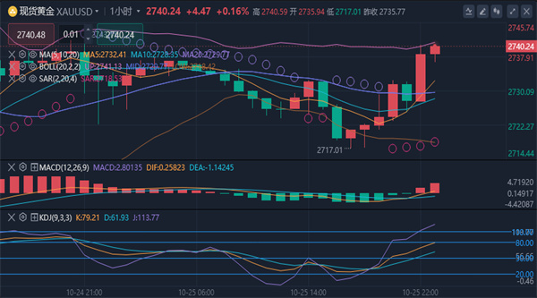 均线也已经交叉形成死叉的结构,黄金前期连续拉升而目前短线筑顶是大跌的前兆,综合来看,今日黄金短线操作思路上反弹做空为主,回调做多为辅,上方短期重点关注2745-2750一线阻力,下方短期重点关注2720-2715一线支撑。