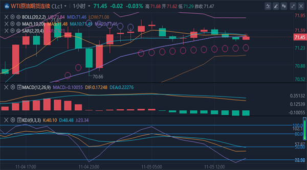 美原油亚盘时段小幅震荡,但依然延续隔夜涨势,交投于71.51美元/桶附近。而基本面上