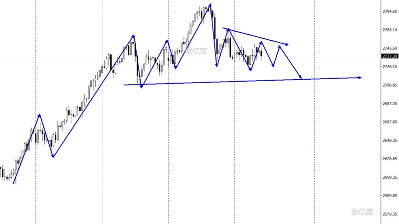 金价连续两天震荡修正,今天中阴跌破震荡区域,目前可以肯定是日线调整将要扩大。只要2750这个位置不被重新拿下,下方空间会逐步打开。所以接下来需要注意反弹空机会。四小时,台阶式下行终究向下放量打破,进一步延续下行。继续关注下行通道下延续情况。综合以上分析,张亿富认为:黄金连续三天看跌,今日终于等到了,后市关注金价