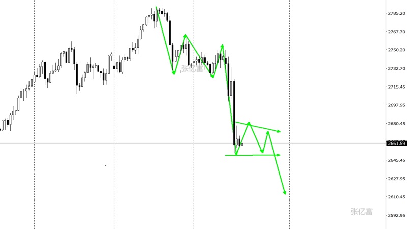 (美黄金06,4587.4,1.04%,模拟交易)延续承压。黄金四小时线全程都是大阴线下行,全程都是大阴线吞没阳线,几乎没有反弹的余地,哪怕反弹到2680附近,也是大阴线瞬间抵达2660附近,这是超级卖出的走势,大阴线实体太恐怖,当下依然延续高空为主。综合以上分析,张亿富认为:黄金趋势转空,有望出现延续,今日操作上考虑反弹做空为主,低多为辅,上方关注2677-2685美元阻力,下方关注2650-2630美元支撑,如果出现直接下破的走势可以追空一次。
