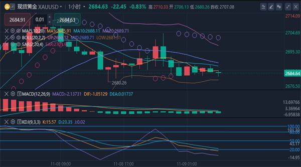 【黄金技术面分析】:周五,现货黄金价格下跌0.81%,收于每盎司2,684.03美元,而美国期金则下跌0.4%,至每盎司2,694.80美元。美元指数本周录得上涨,黄金因其强势受到打压,市场情绪从避险情绪向风险偏好资产转移。受美元走强以及市场预期变化的影响,本周黄金下跌1.8%,为五个多月来最大跌幅。黄金价格走势主要受到大选后美元的强势压制,以及美联储降息的综合作用影响。美元指数本周上涨0.6%,使得以美元计价的黄金对持有其他货币的投资者成本上升,从而削弱了需求。