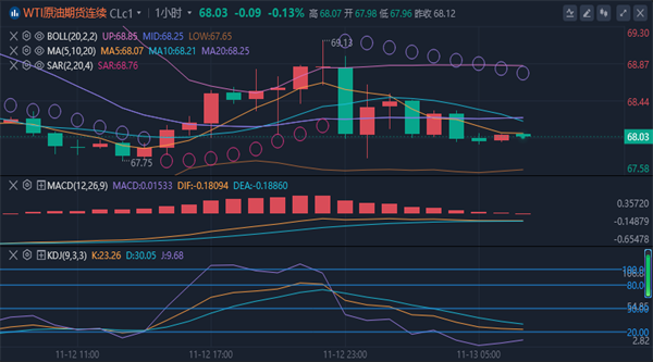 美原油连续合约报68.47美元/桶,日内上涨0.63%。然而,尽管小幅反弹,