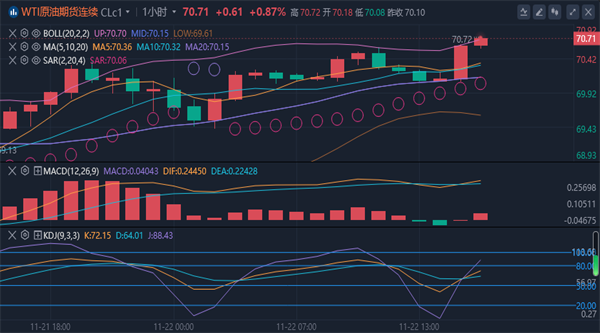 美原油亚盘时段延续昨日上涨,交投于70.40美元/桶附近,基本面上尽管美元指数继续走高,但依然未能限制