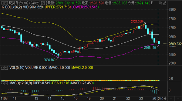 (美黄金06,4587.4,1.04%,模拟交易)单边下跌106个点,跌幅-3.35%,收盘报价2625一线。目前的短期阻力看2632和2645两个节点,而支撑就看回撤低点2615和1小时下轨2602,目前1小时图形中MACD下跌量能开始减弱,黄金30分钟见底,反弹先看2640-45区域,届时再考虑能否做空。如若先下跌,就看2615得失定强弱,跌破才会去考验1小时下轨2602和日线SAR指标2595形成的支撑范围,没破新低切记不可追空。早盘策略:黄金建议触及2602-2600区域做多,2595补仓多单,