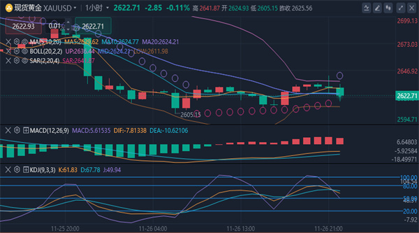 (美黄金06,4587.4,1.04%,模拟交易)技术面分析]:现在黄金的日线中轨直接打破,那么本周在重新站上2648上方之前,黄金都是弱势看空的行情,而只有重新站上2660上方,多头才有再次延伸的机会,在此之前,黄金下方支撑只有2605,2600的位置去寻找。黄金1小时