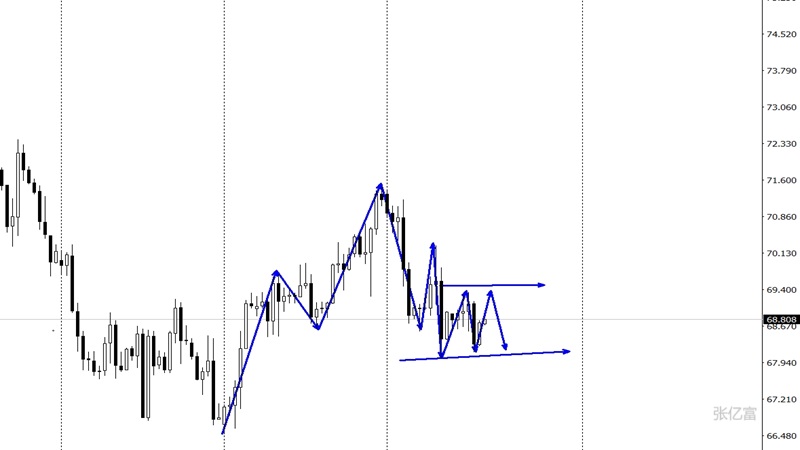 (美无铅汽油05,3.2593,-1.14%,模拟交易)在高位回落后,出现了两次向上反弹走势,均出现了继续回落的结果,进一步表明了多空争夺的过程,空头动能应该占优一点,但是值得注意的是下方支撑位68.0区域一直没有下破,所以后市该水平就是空头持续的关键。综合以上分析,张亿富认为:原油大跌后,油价运行在一个三角拉锯中,今日操作上考虑高空低多策略,上方关注69.3-70.3美元阻力,下方关注68.0-67.0美元支撑。